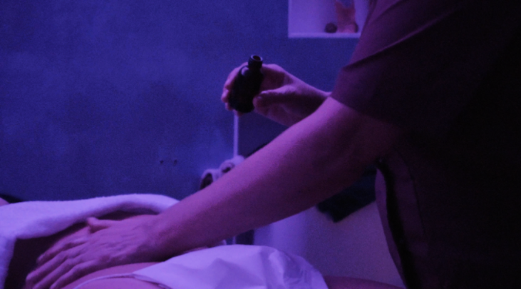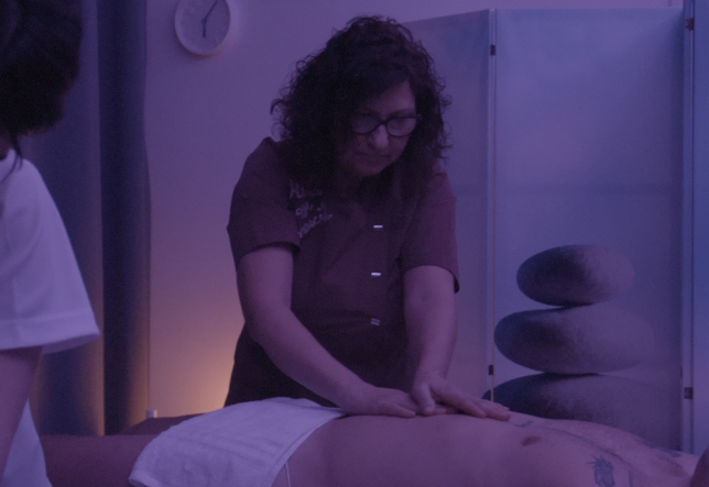 Un massaggio in sospensione che sostiene il corpo, alleggerisce la colonna vertebrale e calma il sistema nervoso, creando uno spazio di profondo rilascio e ascolto.